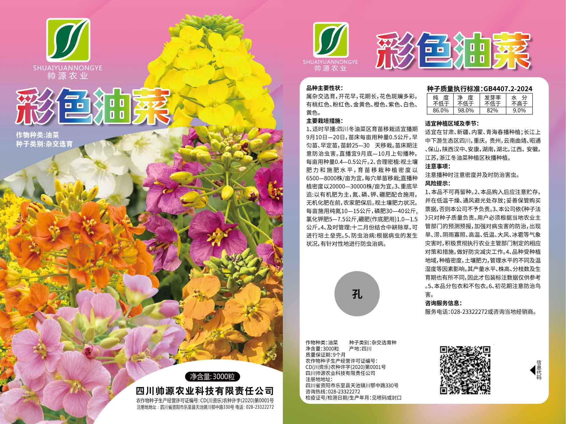 四川帥源農業科技有限責任公司集科研、生產、經營于一體,技術實力強,資產雄厚。擁有一支多年從事品種選育和種子生產經營經驗、團結敬業高素質的員工隊伍,其中具有中、高級專業技術職稱的達80%。在省內外建有穩固的種子生產基地。 公司管理體系完善,營銷網絡健全。始終貫徹“以質量求生存、以信譽求發展”的營銷理念;以優質的產品,合理的價格,至善至美的服務,與種子企業建立了緊密的業務合作關系,種子暢銷全國各地。 公司誠信經營,獲社會各界認可和好評。 ......